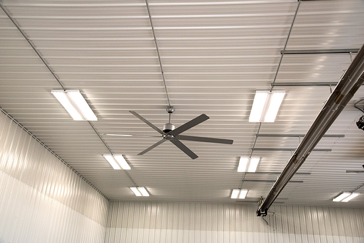 Wiring for new industrial fan and lighting in a machine shed shop.